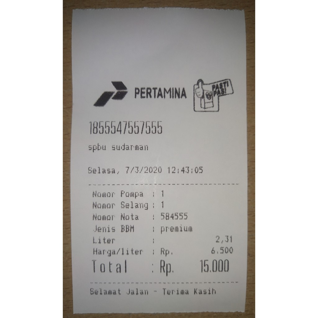 Terjual jasa buat bon struk bensin.